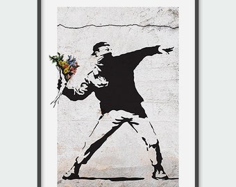. The image is seen in Jerusalem preserved by a perspex overlay but the location is a particularly prominent to the meaning of the picture. Banks Flower Thrower Сanvas wall art street art Banksy poster banksy Flower bomber Banksy wall art banksy canvas print Banksy panel 3 4 5 TexelPrintArt 5 out of 5 stars 386. Browse Bid Now.